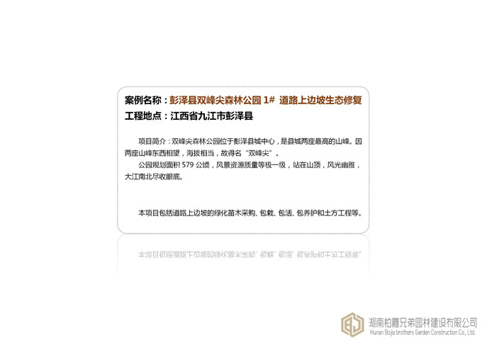 版權(quán)所有:Copyright ?湖南柏嘉兄弟園林建設有限公司 電話:0731-863 99789 地址:湖南省長沙市免責聲明:本站支持廣告法相關規(guī)定, 且已竭力規(guī)避使用“極限化違禁詞",如不慎出現(xiàn)僅代本站范圍內(nèi)對比,不支持以任何"違禁詞”為借口舉報我司違反《廣告法》的變相勒索行為! 本站部分素材來源互聯(lián)網(wǎng),以傳播信息為目的進行轉(zhuǎn)載,如涉及版權(quán)請直接與客服聯(lián)系,我們將及時更正刪除,謝謝。